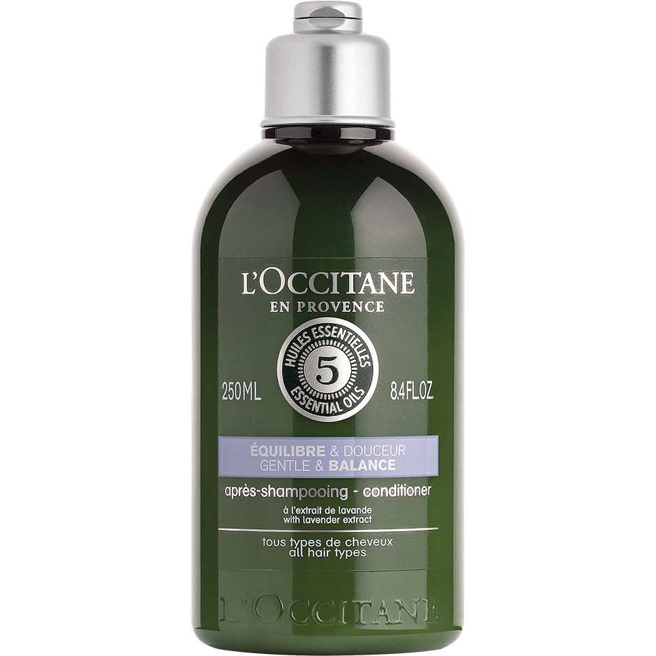 250 ml, Aroma Gentle & Balance Conditioner från L’Occitane är ett balsam, som är berikat med eteriska oljor av citron, apelsin, rosmarin, kamomill och lavendel med skyddad ursprungsbeteckning (SUB), har en behaglig konsistens, är underbart väldoftande och ger håret ett friskt utseende. Den lätta, krämiga konsistensen är ljuvlig och den utsökta doften stimulerar dina sinnen. Detta silikonfria balsam reder varsamt ut håret. Håret blir följsamt och silkeslent och återfår sin naturliga glans.