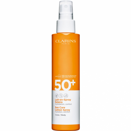 Sun Care Lotion Spray Spf 50+ Body är ett solskydd som är lättapplicerat och sprider sig fint tack vare spraybehållaren. Den skyddar huden från solens skadliga effekter och ger fukt för att lyfta fram en hälsosam solkysst hud. Passar alla hudtyper i alla situationer, oavsett destination eller aktivitet. Huden lämnas mjuk utan några vita märken från produkten och lämnar en exotisk doft. › Solskydd SPF 50+ i spraybehållare. › Lättapplicerat och ger fukt.› Lämnar huden mjuk och har en exotisk doft. ANVÄNDNINGSpraya lotionen över kroppen innan solexponering. Smörj in jämnt över torr hud. Återapplicera varannan timme, speciellt efter bad.INGREDIENSERClarins har valt att inte publicera någon innehållsförteckning. En fullständig innehållsförteckning finns alltid på produkten vid leverans så läs noga igenom den om du t.ex. är allergisk eller överkänslig mot något ämne.