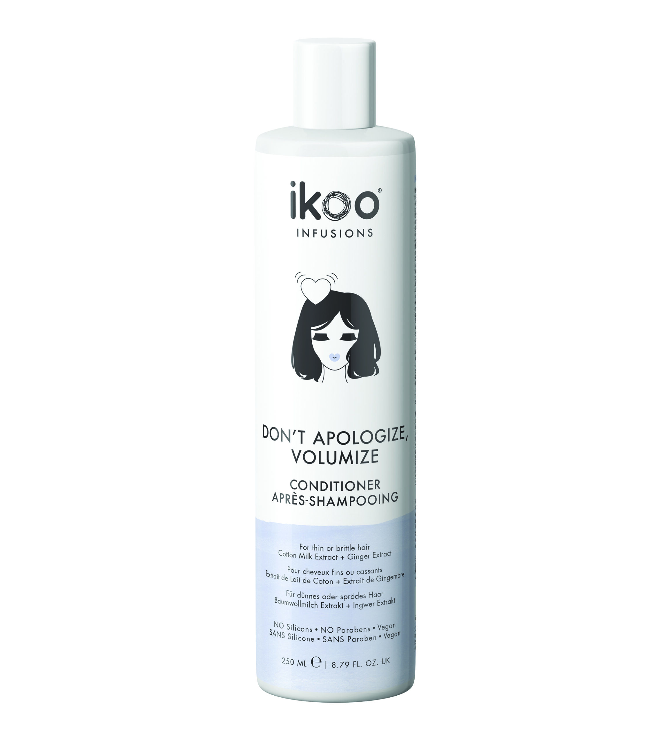 Ger ett lyft för tunt och sprött hår. Ju större desto bättre, det gäller även här. Denna produkt gör håret tjockare utan att du behöver anstränga dig. Bomullsmjölksextrakt gör håret fylligare och spänstigare. Extrakt av ingefära och vete tillför E-vitamin och antioxidanter som ger håret nytt liv och gör det silkeslent och mjukt. Innehåller inte silikoner, parabener, sulfater, paraffin eller artificiella färgämnen. Vegansk och ej testad på djur.