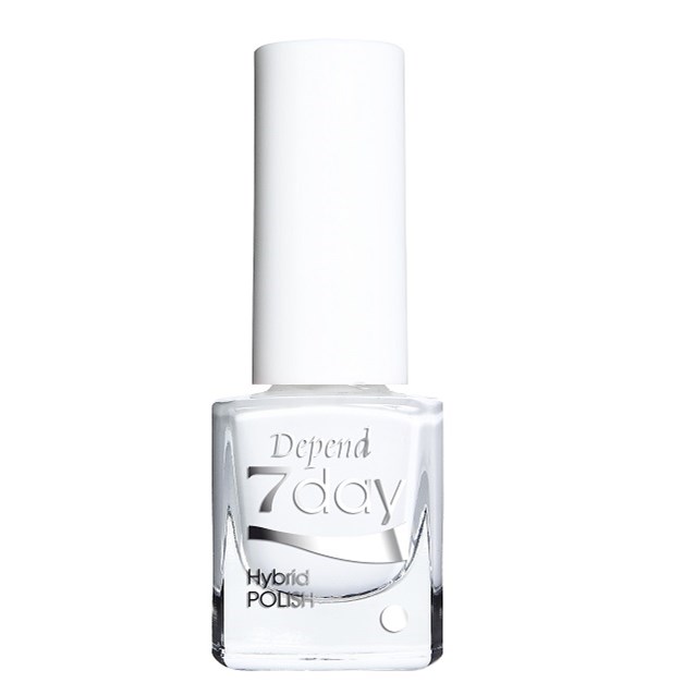 Nagellacket för dig som söker en polish med högklassig hållbarhet. Depend 7Day Hybrid Polish ger superglans och gel feeling. Hybrid Polish innehåller en hybridformula som håller upp till en vecka, är lätt att applicera och du tar enkelt bort lacket med Depend nagellacksremover.Med 7Day Hybrid Polish behövs ingen LED-/UV-lampa, utan lacksystemet härdar i normalt dags-/lampljus.Användning av 7Day Hybrid Polish När du applicerar Depend 7 day Base, Polish och Top gör du alltid alla 10 naglarna i en följd. Rengör naglarna med Depend 7 day Cleanser. Vänta 30 sekunder så att ytan är helt torr. Applicera 7 day protecting Base på alla naglarna. Börja på lillfingret (från höger eller vänster. Därefter kan du direkt applicera det första lagret av 7 Day Hybrid Polish. Vänta för säkerhets skull 30 sekunder innan lager 2 appliceras. Vänta även här 30 skunder extra innan du applicerar 7 Day Top. Du avslutar med att applicera Hybrid Top i 2 lager. Vänta 3 minuter innan du applicerar sista lagret Hybrid Top. Efter 5 minuter är 7 Day-behandlingen torr så att du kan vidröra lackytan.Depend har gjort det enklare för dig att välja färg på nagellacket! Med 3 olika symboler som visar täckningsgraden på Hybrid polish: Täckande, halvtäckande och transparent. Självklart kan de täcka mer med fler lager, de har utgått från 2 tunna lager.5ml