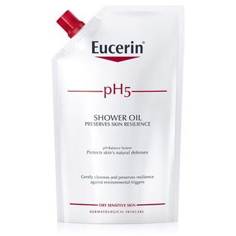 Aktiverar hudens egna skydd tack vare pH5 Enzyme Protection. En krämig daglig rengöring som bevarar hudens naturliga försvar och skyddar mot uttorkning. Utan parfym.Eucerin pH5 Shower Oil har utvecklats särskilt för känslig hud. Den unika kombinationen av pH5 citratbuffert och extra mild ytaktiva ämnen skyddar hudens egna enzymer. Intensiv lipidpåfyllning gör att huden känns silkeslen och förhindrar att den torkar ut, även om du duschar ofta. Oparfymerad.De milda ytaktiva ämnena i Eucerin pH5 Shower Oil är bevisat mycket skonsamma och lämpar sig därför för rengöring av känslig hud som lätt blir irriterad.Användning: Använd Eucerin Shower Oil varje dag för att bevara hudens naturliga barriärfunktion. Komplettera med Eucerin pH5 Lotion för bästa vård och skydd.Du har torr känslig hud eller lider av typ I-allergier: Eucerin pH5 Shower Oil är en mild rengöring för känslig hud, som bidrar till att förhindra uttorkning av huden. Den kan även användas på allergikänslig hud.pH5Frisk hud är kroppens allra främsta försvar mot externa irriterande ämnen. Men när huden blir torr och känslig försämras dess skyddsbarriär och den blir lätt ännu torrare och känsligare.Eucerin pH5 är en omfattande produktserie som är särskilt framtagen för att ge bästa tänkbara omvårdnad av torr och känslig hud. Det unika Eucerin pH5 Balance System återställer hudens optimala pH-värde och stärker dess naturliga försvar, vilket gör den mer motståndskraftig mot miljöfaktorer och mindre känslig. Många av produkter innehåller även dexpantenol som är känt för sina återbildande egenskaper.Alla produkter i serien – som inkluderar body lotions, kroppscremer och kroppsrengöringsprodukter – har testats kliniskt och dermatologiskt och visat sig vara mycket lämpliga för daglig användning på torr, känslig och allergibenägen hud. De skyddar huden mot uttorkning, främjar långvarig återfuktning och gör att huden känns och ser mjuk och len ut.400ml