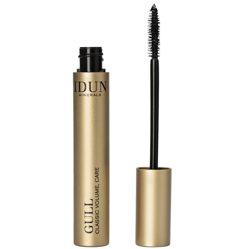 GULL har en ny mer hållbar förpackning (50% mindre material) och samma veganska formula. Gull är en volymgivande mascara som ger klassiskt fulländade ögonfransar. Högrenade mineralpigment ger en intensiv färg medan de noggrant utvalda ingredienserna stärker, skyddar och ger näring till dina fransar. Den har en tunn fiberborste som ger klassisk volym till ögonfransarna. Gull är vattenfast och tas bort med till exempel IDUN Minerals Cleansing Face & Eye Lotion eller Cleansing Face & Eye Mousse och ljummet vatten.Alla IDUN Minerals mascaror är oftalmologiskt testade och lämpliga för känsliga ögon och kontaktlinsbärare. 11,5ml