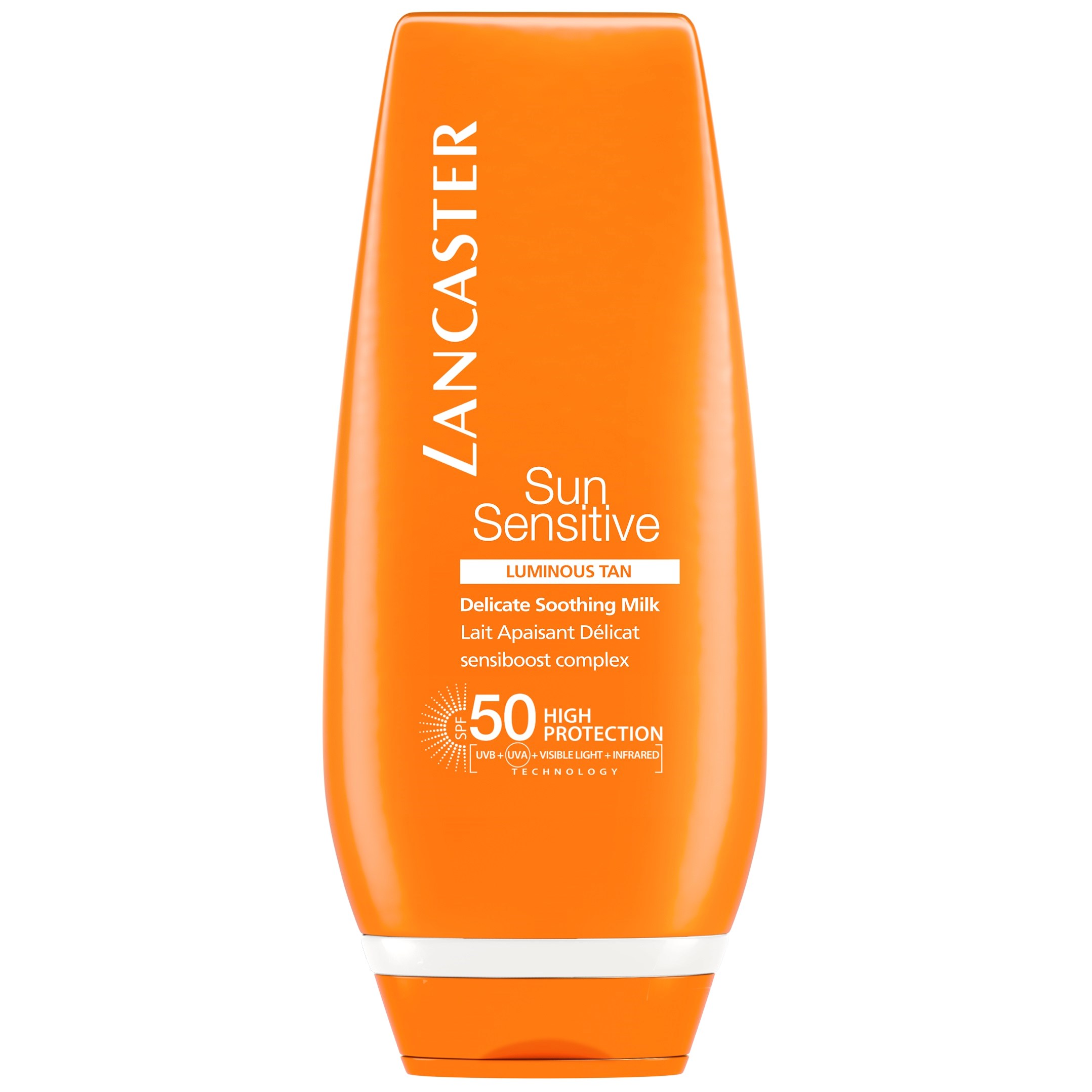 Sun Sensitive Delicate Softening Milk SPF50 kombinerar mycket högt skydd och ett “sensiboost komplex” för att ge solkänslig hud extra skydd tillsammans med ett ljust, delikat UVA och UVB filter. Full Light Technology, ger unikt skydd mot infraröda och synliga ljusstrålar, även för solinducerada hudreaktioner. Sensiboost komplex förstärker hudens naturliga resistens, minskar hudrödhet och irritation. Vattentålig. Dermatologiskt testad. Hög toleransformula.125ml