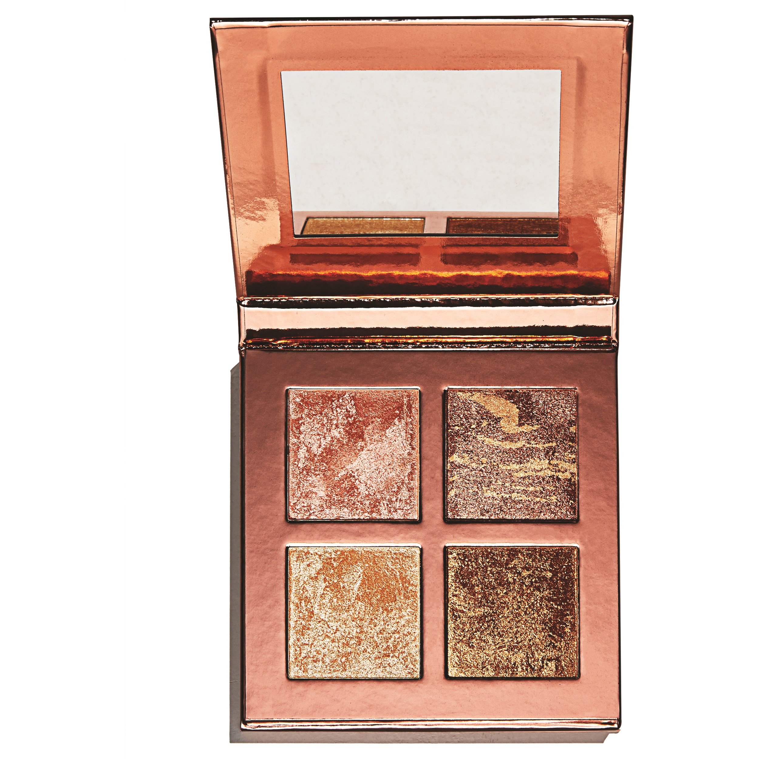 Gå med i vår quad squad med den senaste highlight paletten från Revolution. Bli upplyst med 4 st Highlighter powder: gyllene persika, champagne guld, varm bärnsten och gyllene brons.lys upp din hud och förbättra dina bästa egenskaper med allt detta i en palett. lägg lite highligter på toppen av dina kindben för en hälsosam glöd. Lägg på en touch av highlight i din amors båge, panna, näsa och nyckelben för att uppnå en intensiv glöd. Varför inte gå vidare och skapa tredimensionella läppar genom att lägga till lite Highlight i mitten av dina läppar eller accentuera dina ögon genom att applicera produkten på locket och inre hörnen.Allt samlat i en vacker rosa guldförpackning.