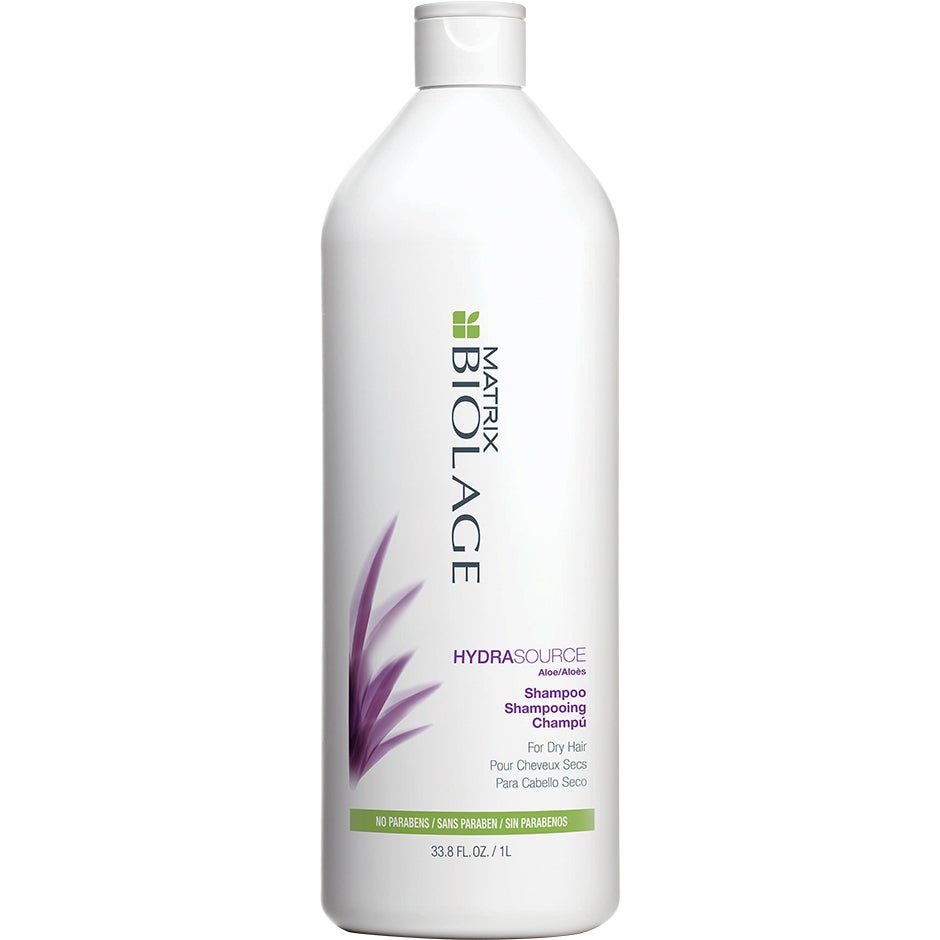 1000 ml, Ge ditt torra, törstiga hår rikligt med vård med Biolage Hydrasource Aloe Shampoo från Matrix. Biolage Hydrasource Aloe Shampoo innehåller en unik formula som hjälper till att behålla fuktnivåerna i håret samtidigt som det förbättrar hårets absorberingsförmåga av fukt – likt en Aloe Vera-planta.