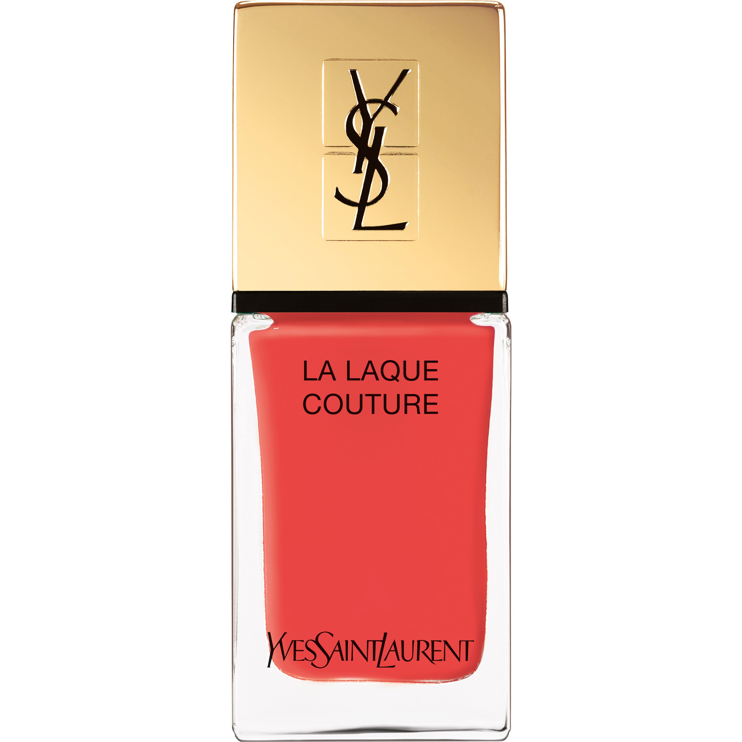 Yves Saint Laurent La Laque Couture. Ett brett urval modeinspirerade nyanser, från subtila och naturliga till livfulla och dramatiska, ger en högglansig finish för en omedelbar touch av glamour. Den otroligt hållbara formulan är berikad med rosolja och stärker, återfuktar och skyddar naglarna från att spricka och flagna. Lätt att applicera och torkar snabbt utan ränder. La Laque Couture har en specialutvecklad borste för enkel och snabb applicering. Nagellacket fångas upp perfekt i borsten som tar upp droppar istället för att släppa ut dem, för ett felfritt och intensivt resultat.